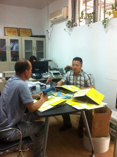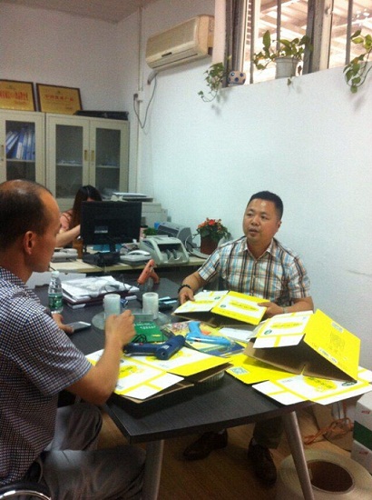 (許總向娃哈哈采購經理介紹熱熔膠槍點膠技術)
