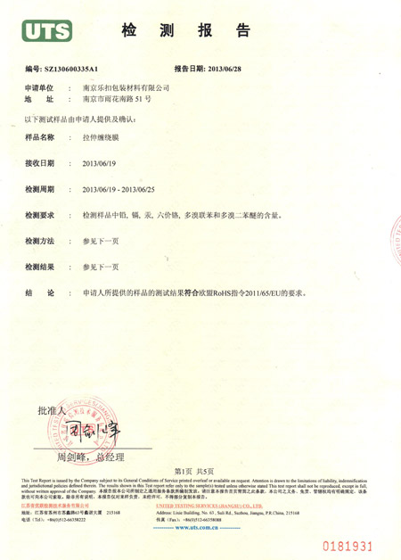 拉伸纏繞膜檢測報告