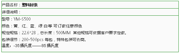 材料特征:采用優質的阻燃PP,或UL認可的尼龍PA66塑料制成,防火等級為94V-2。耐酸、耐蝕、絕緣性佳,不易老化,承受力強,使用更安全。此封條為一次性,一旦封上無法開啟,安全性極佳,使用完全一次后不能再次使用!防止偷盜泄密封存。